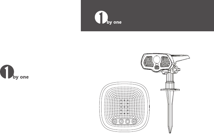 Thank you for purchasing 1byone Wireless Driveway Alert Alarm with Solar LED Light. Please read this instruction manual before use to ensure safe operation. Table of Contents 1. Package Includes............................................ 01 2. Parts Names...................................................... 02 3. Getting Started 3.1 Power for Receiver............................................. 03 3.2 Power for Solar LED Light................................... 04 3.