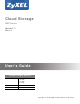 Index W warrant y 365 not e 365 web configurat or 38 login 38 navigat ion panel 140 st at us 139 web publishing 215, 230, 240 act ivat ion 230 exam ple 238 port num ber 240 t roubleshoot ing 350 web securit y 182 workgroup nam e 210 Y YouTube 262 access right s 269 act ivat ion 263 aut horizat ion 267 configurat ion 267, 268 grace period 269 video cat egory 269 Z zCloud 30 ZyXEL Drive 26 Cloud Storage User’s Guide 372