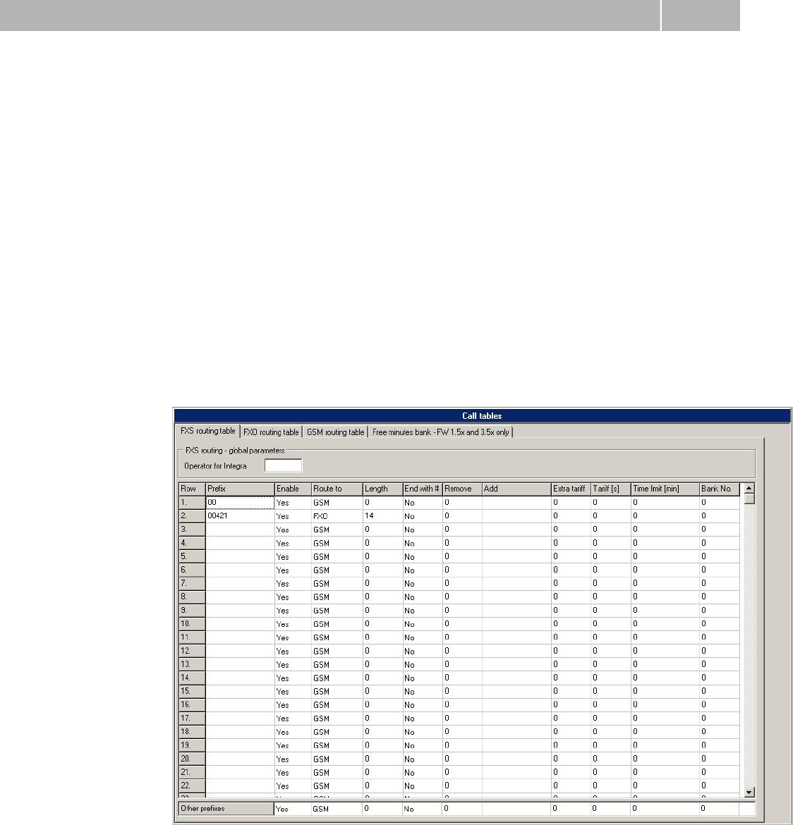 the dialed number matches this prefix on the same table row. The table contains