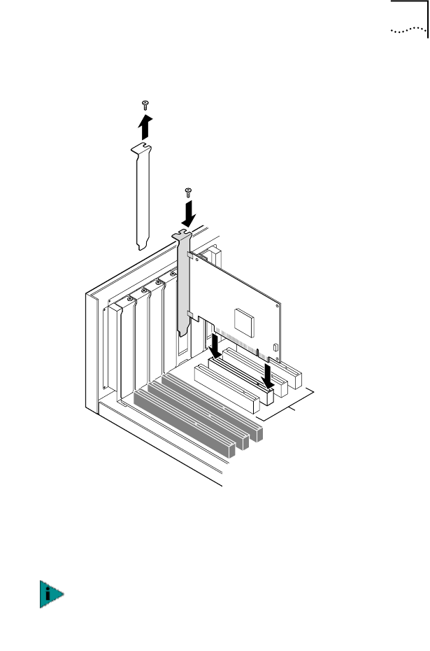 1 Carefully insert the NIC in the empty PCI slot, as