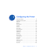 Contents Chapter 1 Configuring the Printer ........................................... 1-1 Control Panel Features......................................................... 1-2 The Display ...................................................................... 1-3 The Indicator Lights.......................................................... 1-4 The Keys .......................................................................... 1-5 Navigating the Menu System.............................................