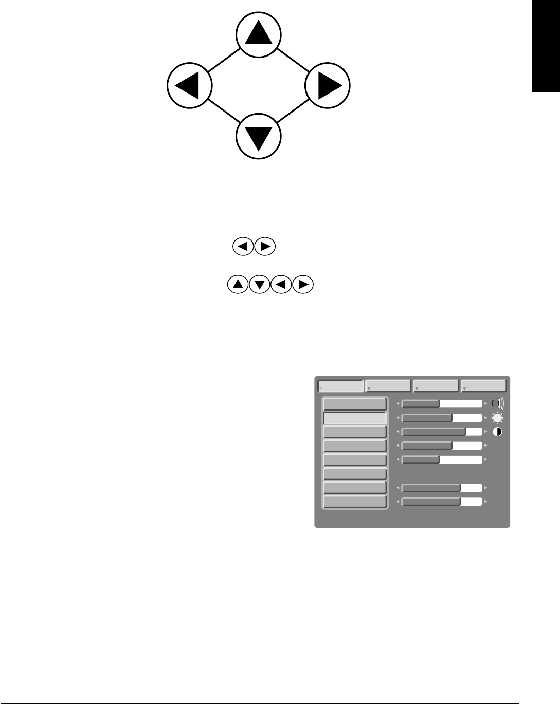 Separate settings are provided for the VIDEO, RGB1 and RGB2 input terminals. Adjustments are saved after