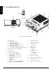 ENGLISH 2.2 Part Identification List STANDBY/ON MUTE BLANK ZOOM FOCUS VOLUME MENU VIDEO BACK LIGHT RESET RGB 13 2 DRAG SELECT L R 1 3 12 9 2 O I 11 10 4 8 5 7 6 EPS-59A Figure 2.2 Identifying MP8780 Parts 1. 8 Operation Panel a) STANDBY/ON button b) Input Source: RGB/Video c) Mute, Blank, Volume, Zoom, Focus d) Display Menu (On/Off) e) Select button (select displayed value) f) Arrow Direction buttons (left/right or up/down) 2. Remote Control Sensors (front/back) 3.