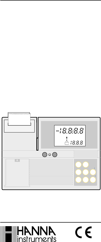 Dear Customer, Thank you for choosing a Hanna Instruments Product. Please read this instruction manual carefully before using the instrument. This manual will provide you with all the necessary information for the correct use of the instrument, as well as a precise idea of its versatility in a wide range of applications. These instruments are in compliance with CSA, UL and (EN 50081-1 and EN 50082-1) directives. TABLE OF CONTENTS Preliminary Examination ...................................