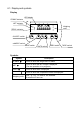6. DESCRIPTION OF EACH PART Display Display pole AC power cable Spirit level Pole support foot Weighing pan (The above illustration is for scales with a display pole.) Leveling foot Display rear side Display knobs Display knobs Display stand (The above illustration is for scales with a display pole.) (The above illustration is scales with a display stand.