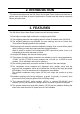 2. INTRODUCTION This manual describes how the SW Series Super Wash Down Scales work and how to get the most out of them in terms of performance. Please read this manual completely before using the scale. 3. FEATURES The SW Series Super Wash Down Scales have the following features: Dust-tight and water-tight construction, complying with IP69K. The weighing platforms and weighing pans are made of stainless steel (SUS304). The weighing platforms are designed for easy cleaning and not to collect dust.