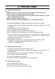 4. PRECAUTIONS 4.1. Installing the scale Caution • Ground the scale so that the user will not be subject to an electric shock. • Do not handle the AC power cable with wet hands. • The AC plug is not water-resistant. Use an electrical outlet located at a place where the plug will not get wet. • Do not handle the cables carelessly. • Do not install the scale where flammable or corrosive gas is present. Consider the following conditions to get the most from your scale.