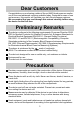 Contents Dear Customers .....................................................................................................3 Preliminary Remarks ..............................................................................................3 Precautions.............................................................................................................3 Parts Identification ..................................................................................................4 Symbols...................