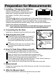 Preparation for Measurements 1. Installing / Changing the Batteries Remove the battery cover and insert new batteries into the battery compartment as shown, taking care to observe the proper direction for each battery. Use R6P, LR6 or similar type batteries. If the symbol appears on the display panel, this means that the batteries are depleted. Always change all batteries at the same time. If you do not intend to use the device for longer periods, remove the batteries.