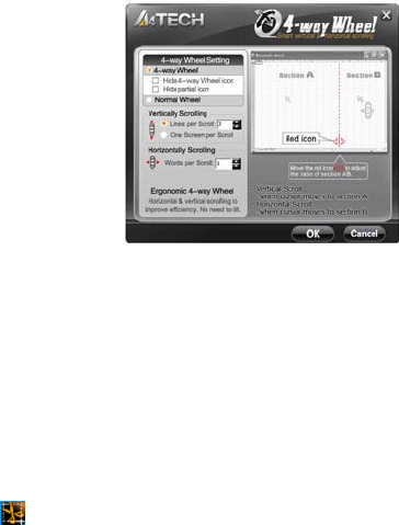 (Note: If the "Normal Wheel" is selected, the wheel will perform as a normal mouse wheel, and “4-way
