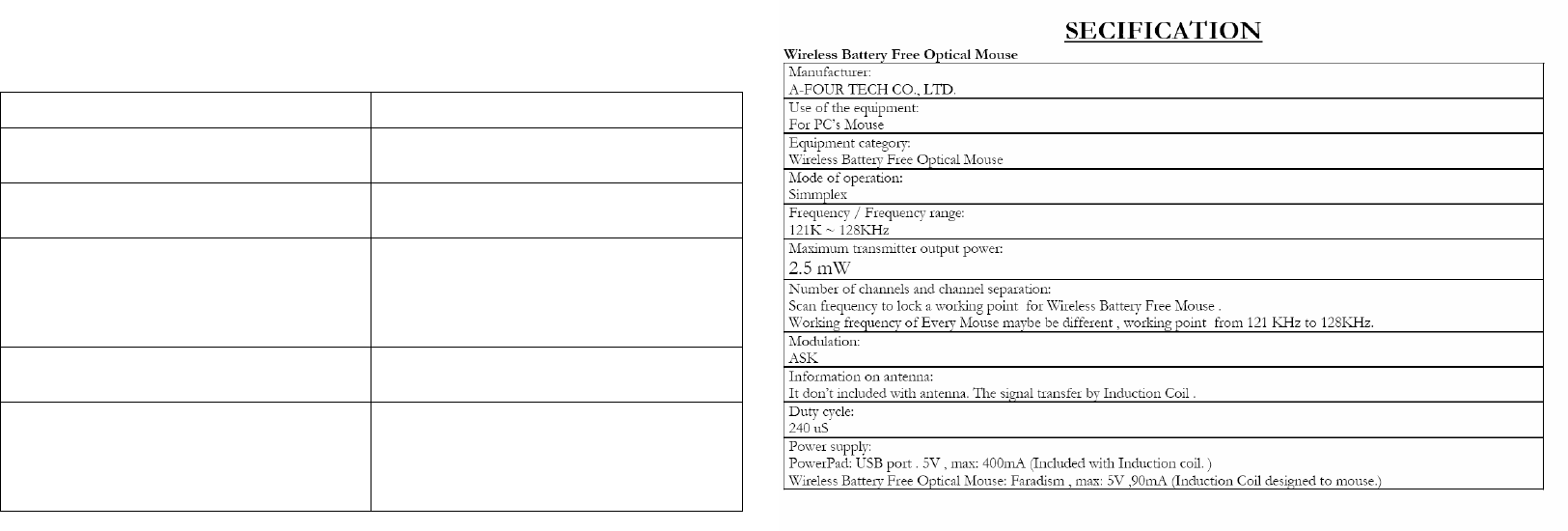 the Mouse Pad/Mouse Inductive