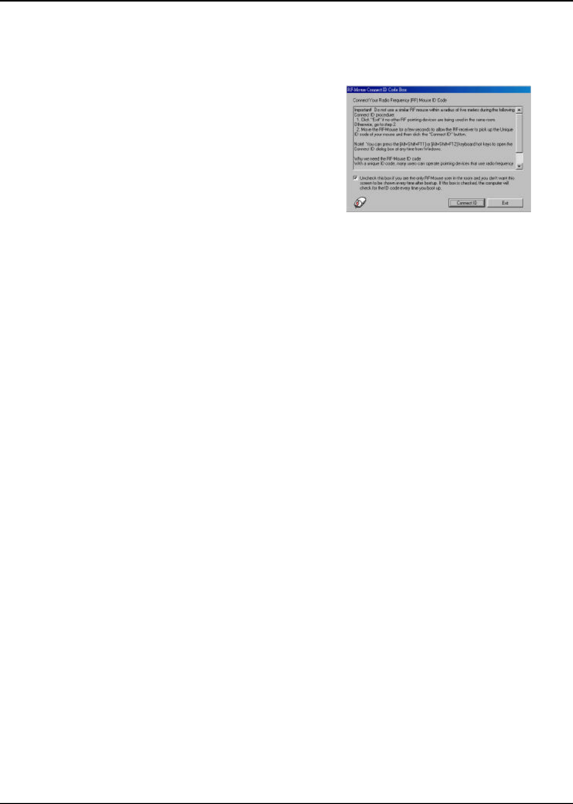 CONNECT ID: Move the RF Optical Mouse for a few seconds to establish a
