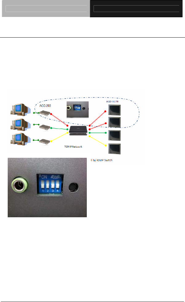 The function of DIP switch is to make ACG-203 and remote displays in one