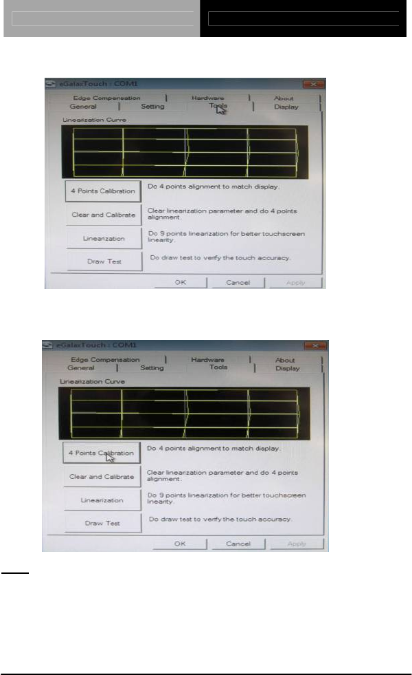 Note: If the alignments do not match display by 4 Points Calibration, please