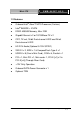 Mini-ITX EMB-9459T A2.0 z Gross Weight 1.2 lb (0.5 Kg) z Operating Temperature 32˚F~ 140˚F (0˚C ~ 60˚C) z Storage Temperature -40˚F~ 176˚F (-40˚C ~ 80˚C) z Operating Humidity 0%~90% relative humidity, non-condensing Display: Supports CRT/LCD, CRT/TV, LCD/TV simultaneous / dual view displays ® z Chipset Intel 945GSE integrated z Memory Shared system memory up to 224MB w/ DVMT3.
