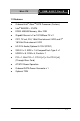Mini-ITX EMB-9459T Rev.B 1.2 Features z Onboard Intel® AtomTM N270 Processor (Fanless) z Intel® 945GSE + ICH7M z DDRII 400/533 Memory, Max. 2GB z Gigabit Ethernet x 2 or 10/100Base-TX x 2 z CRT, TV-out, DVI, 18-bit Dual-channel LVDS and 2nd 18/24-bit Dual-channel LVDS z HD 2CH Audio (Optional 5.1CH S/PDIF) z SATA II x 2, EIDE x 1 & CompactFlash Type II x 1 z USB2.