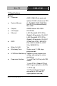 Mini-ITX EMB-A70M 2.4 List of Jumpers The board has a number of jumpers that allow you to configure your system to suit your application. The table below shows the function of each of the board's jumpers: Label Function CN8 Auto Power Button Selection CN9 COM1 RI Power Selection CN22 CMOS Setting Selection 2.5 List of Connectors The board has a number of connectors that allow you to configure your system to suit your application.