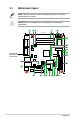 2.2 Motherboard layout NOTE: Place four screws into the holes indicated by circles to secure the motherboard to the chassis. CAUTION! Do not overtighten the screws! Doing so can damage the motherboard. 1 2 3 4 5 17.0cm(6.