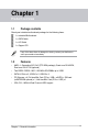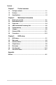 Contents Chapter 1 Product overview 1.1 Package contents.......................................................................... 1-1 1.3 Specifications................................................................................ 1-2 1.2 Features......................................................................................... 1-1 Chapter 2 Motherboard information 2.1 Before you proceed...................................................................... 2-1 2.3 Screw size.........