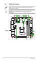 2.2 Motherboard layout NOTE: Place four screws into the holes indicated by circles to secure the motherboard to the chassis. CAUTION! Do not overtighten the screws! Doing so can damage the motherboard. 1 2 3 4 5 4 6 7 8 9 17.0cm(6.7in) CLRTC USB56 CHASSIS USB1112 Intel® BATTERY CHA_FAN CPU_FAN COM1 _VSET KBMS_USB910 LAN2_USB3_34 10 EATXPWR LGA1155 Place this side towards the rear of the chassis 17.0cm(6.