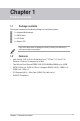 Chapter 1 Product overview 1.1 Package contents Check your industrial motherboard package for the following items. 1 x Industrial Motherboard 1 x SATA Cable 1 x I/O Shield 1 x Support CD If any of the above items is damaged or missing, contact your distributor or sales representative immediately. 1.
