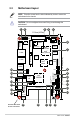 2.2 Motherboard layout NOTE: Place five screws into the holes indicated by circles to secure the motherboard to the chassis. CAUTION! Do not overtighten the screws! Doing so can damage the motherboard. 1 2 3 4 5 11.5cm(4.53in) PCIEX1_1 20 VGA USB1 Intel® N2600 COM4 J1 DDR3 DIMM_A1 EATX_PWR1 19 LVDS_VDD_SEL1 CLRTC1 J2 Super I/O 16.5cm(6.