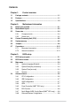 Contents Chapter 1: Product overview 1.1 Package contents.......................................................................... 1-1 1.3 Specifications................................................................................ 1-2 1.2 Features......................................................................................... 1-1 Chapter 2: Motherboard information 2.1 Before you proceed...................................................................... 2-1 2.3 Screw size........