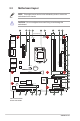 2.2 Motherboard layout NOTE: Place eight screws into the holes indicated by circles to secure the motherboard to the chassis. CAUTION! Do not overtighten the screws! Doing so can damage the motherboard. 1 2 3 4 5 3 6 4 2 24.4cm(9.