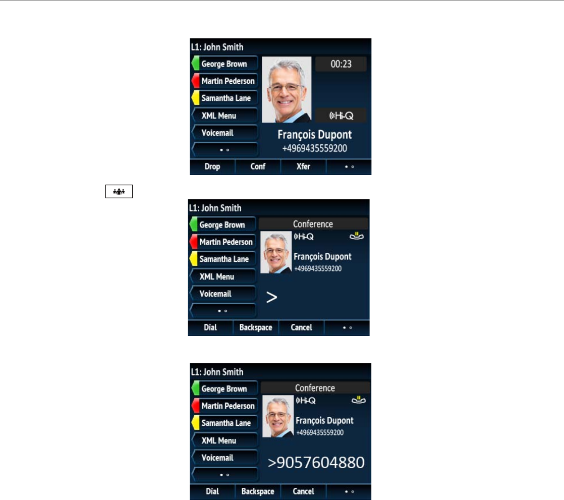 3. Wait for Party 2 to answer. When Party 2 answers, you can consult with them before adding them to the conference.