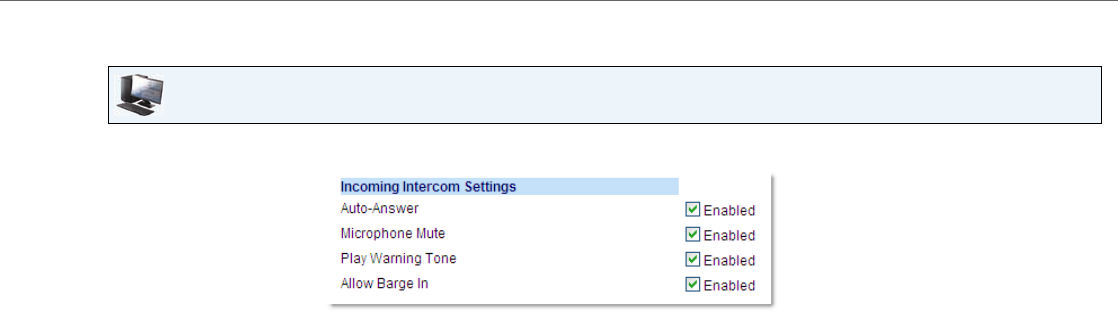 it receives in incoming intercom call. To disable this field, uncheck the box.