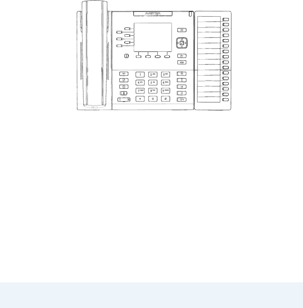 The 6867i IP phone offers an optional M680i Expansion Module that attaches to the right side of the phone to provide