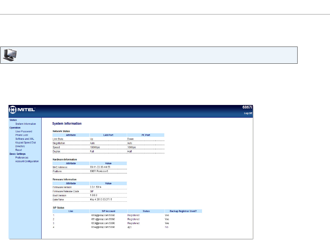 Use the following procedure to view the phone status via the Aastra Web UI.