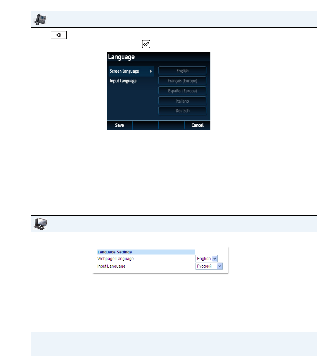 rently loaded to the IP phone. English is the default language and cannot be changed or removed. For more infor-