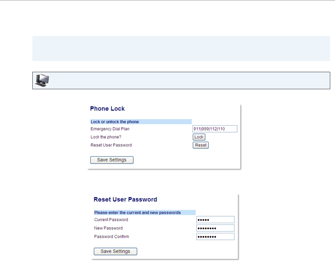 word to the factory default which is blank (no password). You can reset a user password using the Aastra Web UI only.