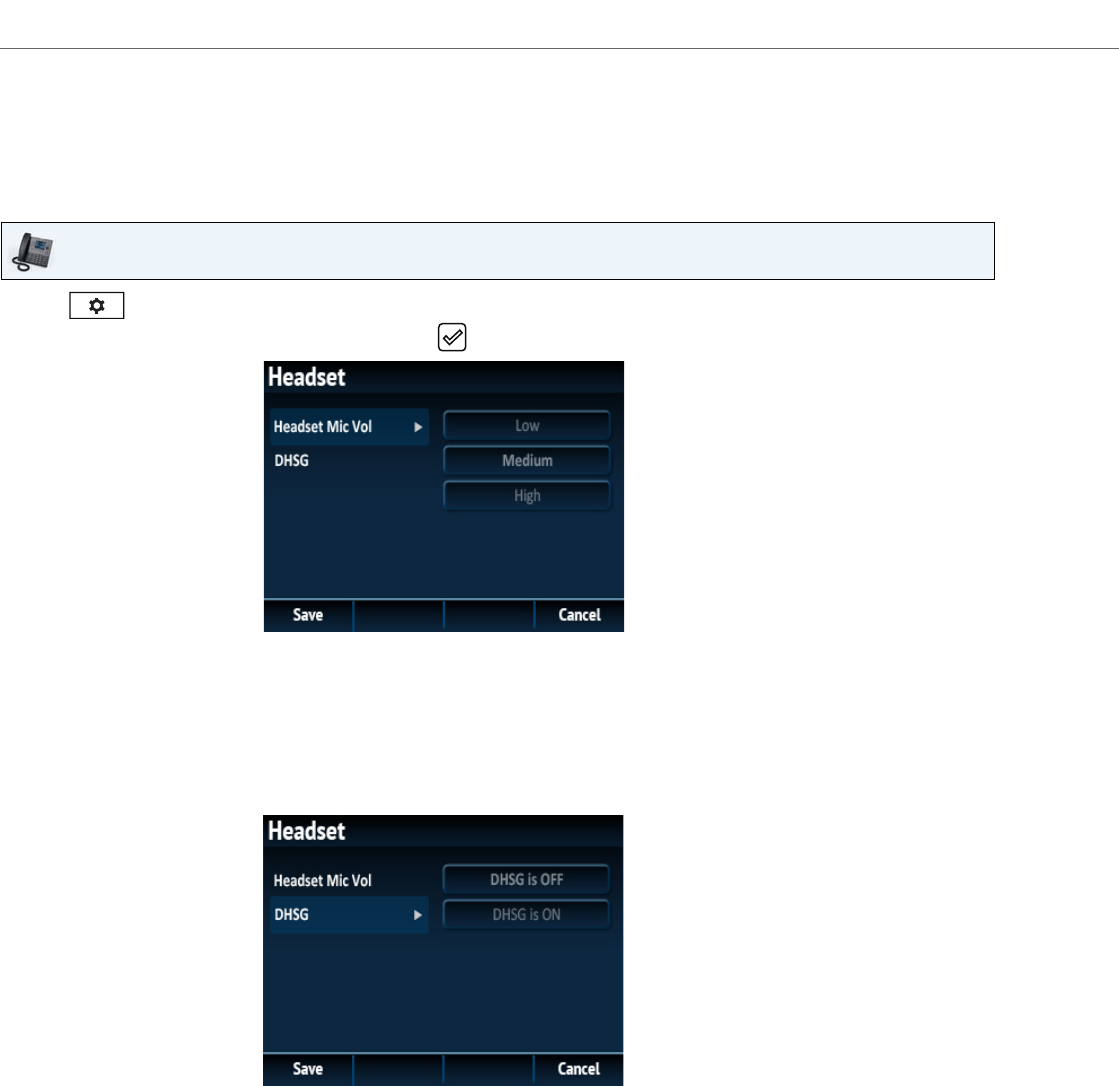 Configuring Headset Mic Volume and DHSG Using the IP Phone UI