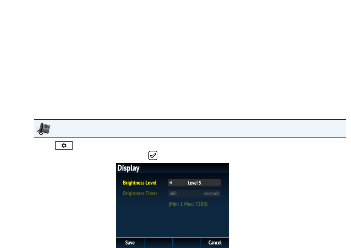 You can set the brightness level and timer using the IP phone UI only.