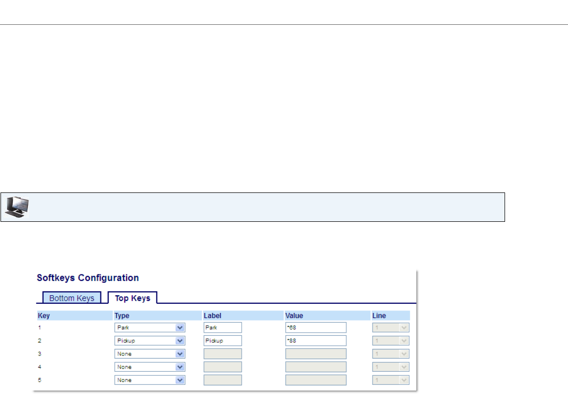 Users can make changes to customize the label of the Park and Pickup keys using the Web UI.