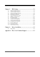 Table Of Contents Chapter 1. 1.1. 1.2. 1.3. Chapter 2. 2.1. 2.2. 2.3. 2.4. Introduction .................................................... 1-1 Features & Specifications....................................................... 1-1 Layout..................................................................................... 1-3 Jumpers & Connectors Description........................................ 1-4 Hardware Setup.............................................. 2-1 Install The Motherboard.................