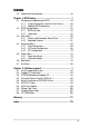 Contents Safeguards About this guide .............................................................................. iii How this guide is organized .................................................... iii Conventions used in this guide ............................................... iii Safety information ........................................................................... vi FCC/CDC statements .................................................................... vii ASUS contact information ........