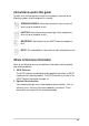 16. System panel connector (20-pin PANEL1) This connector accommodates several system front panel functions. +5V Ground Ground Speaker PLEDKeylock Ground ExtSMI# Ground PWR GND PLED+ Power LED Speaker Connector ® Reset SW A7N8X SMI Lead A7N8X System Panel Connectors • Reset Ground Keyboard Lock ATX Power Switch* * Requires an ATX power supply. System Power LED Lead (3-1 pin PLED) This 3-1 pin connector connects to the system power LED. The LED lights up when you turn on the system power.