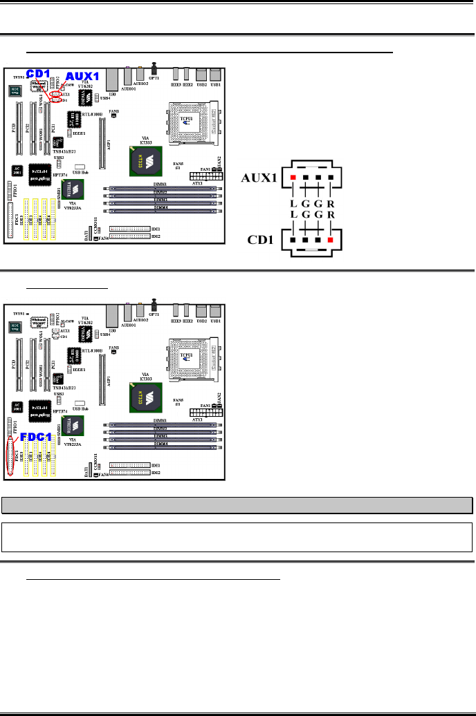 (12). CD1 and AUX1 Headers: CD Audio and Auxiliary audio signal input headers