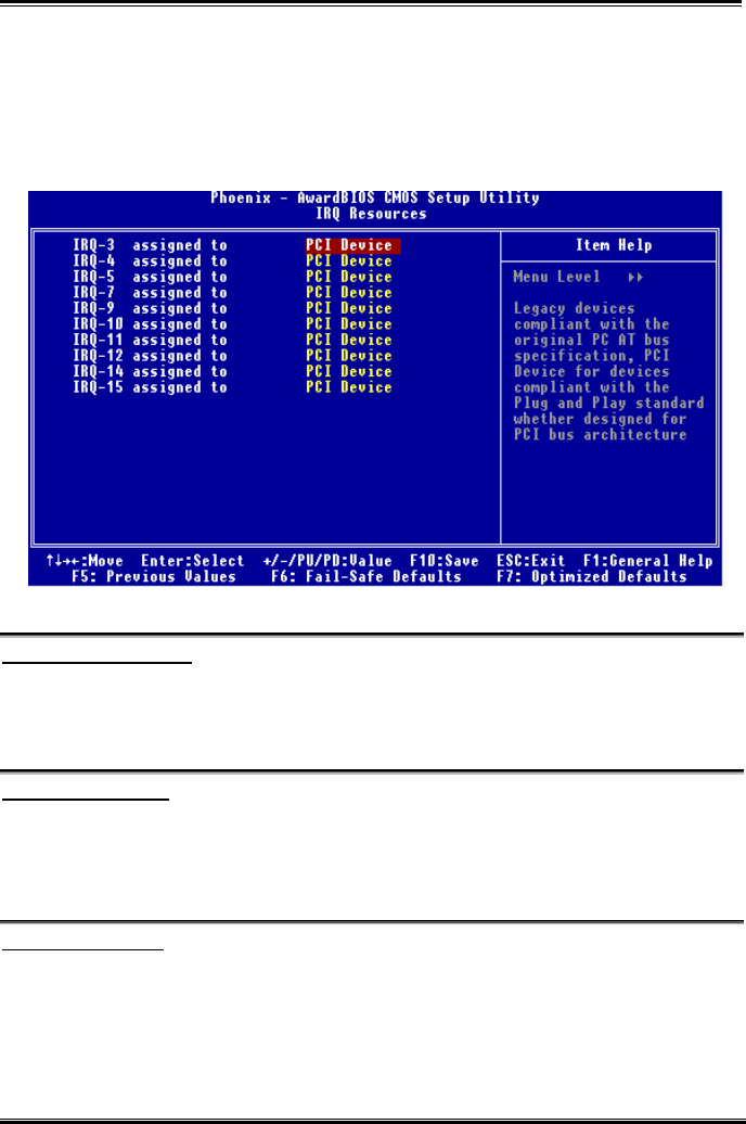 which IRQis assigned to which PCI Device or Reserved it. See the screen shot below.IRQ Resources: