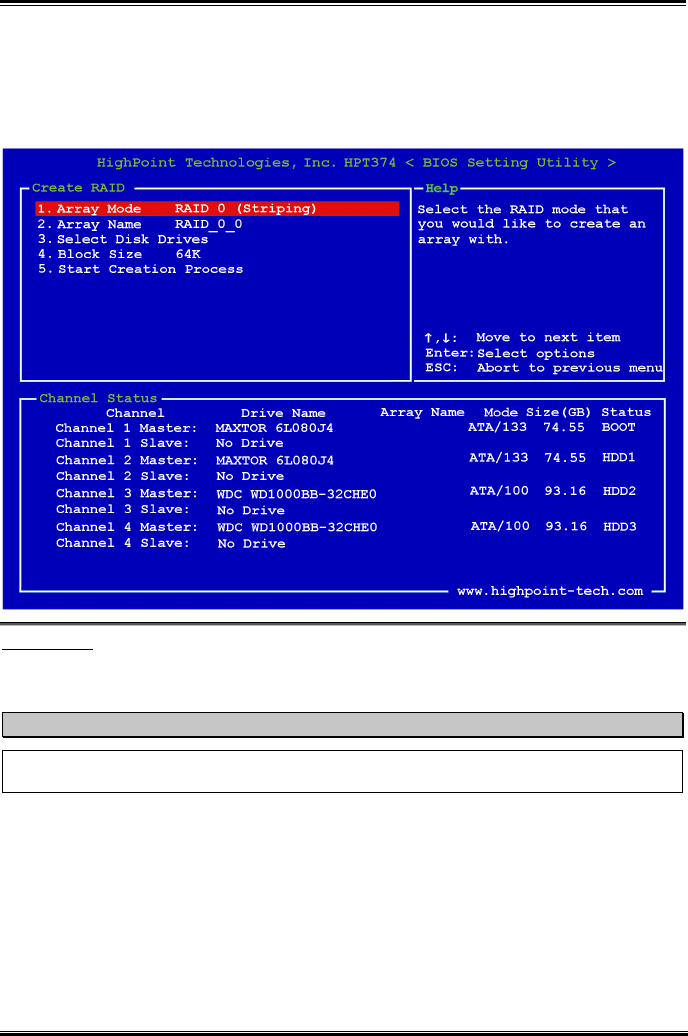 This item allows you to select the appropriate RAID mode for the desired array. There are four modes to
