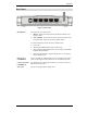 Wireless Router User Guide Physical Details Front Panel Figure 2: Front Panel LED Indicator Power Color Green Status On - Power on. Off - No power. Blinking - during start up. Red – Hardware error Internet Orange (10M) Green (100M) On - Connection to the Broadband Modem attached to the WAN (Internet) port is established. Off - No connection to the Broadband Modem. Flashing - Data is being transmitted or received via the Internet port. This includes "network traffic" as well as user data.