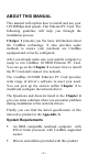 ABOUT THIS MANUAL This manual will explain how to install and use your 10/100Mbps dual speeds Fast Ethernet PC Card. The following guideline will help you through the installation process. Chatper 1 presents you the basic information about the CardBus technology. It also provides some methods to ensure your notebook are CardBus equipped and correctly configured. After you already make sure your mobile computer is ready to run CardBus 10/100M Ethernet PC Card.