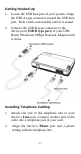 Getting Hooked Up 1. Locate the USB host port of your system. Align the USB A-type connector toward the USB host port. Push evenly and steadily until it is seated. 2. Connect the USB B-type connector to the device port (USB B type port) of your USB Home PhoneLine 1Mbps Network Adapter until it clicks. Installing Telephone Cabling 1. Attach one end of the telephone line to your device’s Line port. Connect another end of the cable into a telephone jack in your wall. 2.