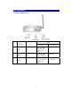 LED Indicators Front Panel: (LED Indicators) Status LED indicator 1 2 3 Power Ethernet Wireless Color Solid Turns solid Blue when the power is applied to this device. Blue Turns solid Blue when an Ethernet cable is connected. Turns solid Blue when the wireless is applied to this device.