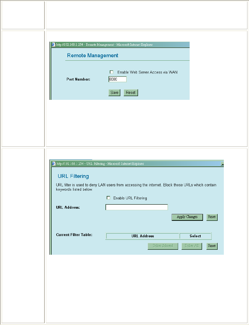 Delete All: Click to delete all the URL addresses in the table.