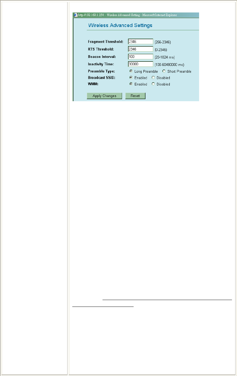 Click Setup button to enter the Wireless Advanced Settings page.