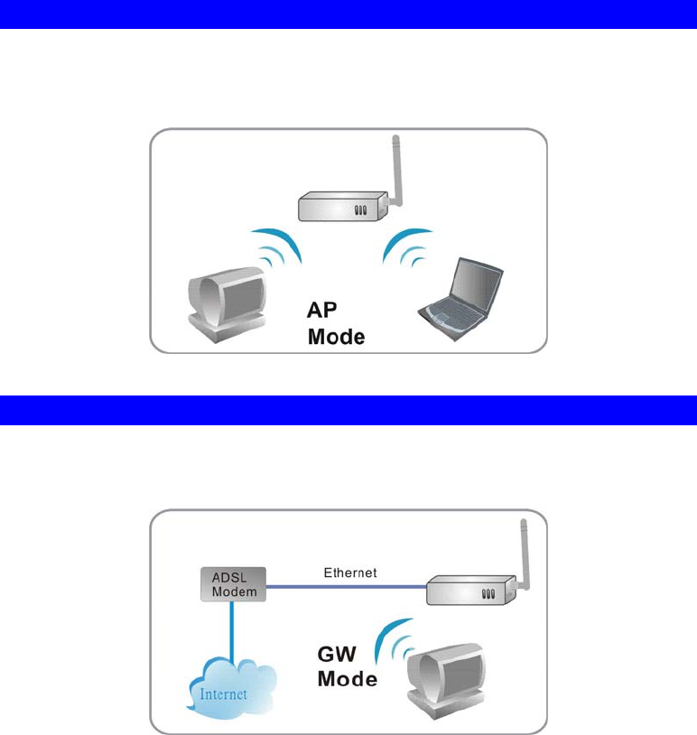 When GW mode is selected, the AP will enter the gateway mode. And the wireless connection